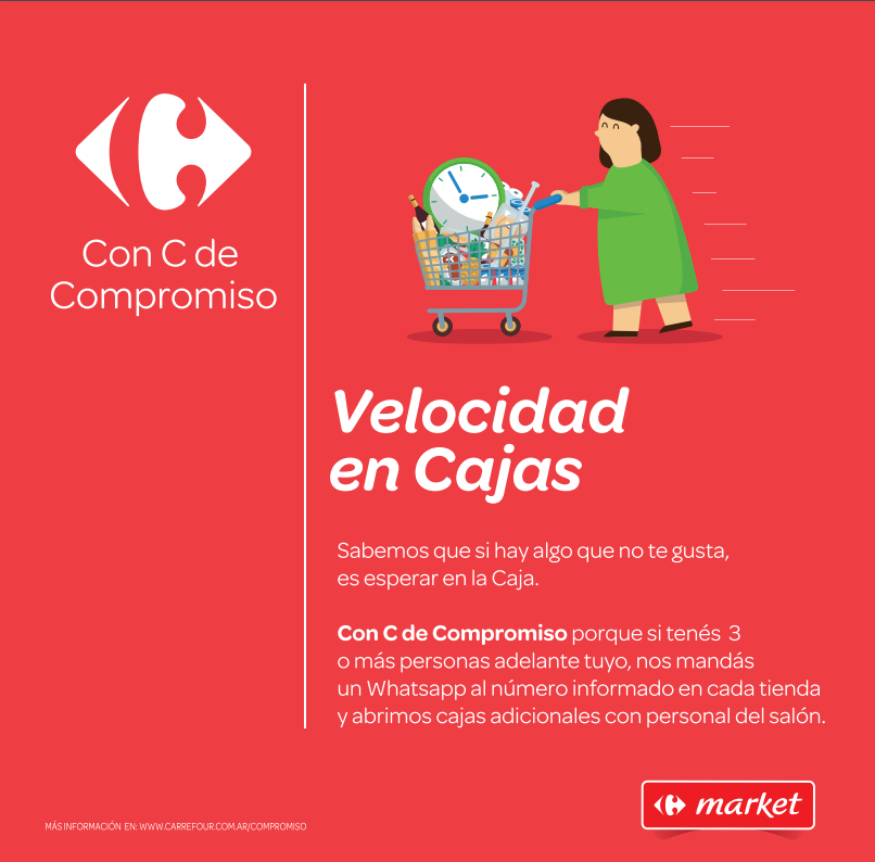 Esta vez le sumamos una particularidad. Hice las compras en un carrefour market para chequear su compromiso con la reducción de las filas en las cajas. Hasta la semana pasada solo me encontraba son 2 cajeras trabajando. Siempre amables y muy eficientes con su trabajo.